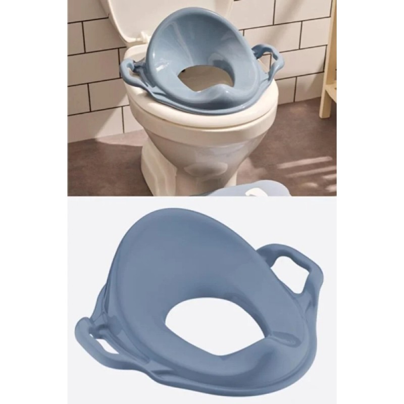 Mavi kulplu çocuk klozet adaptörü, tuvalet eğitim sürecindeki çocuklar için güvenli, konforlu ve pratik bir kullanım sunmak üzere özel olarak tasarlanmıştır.