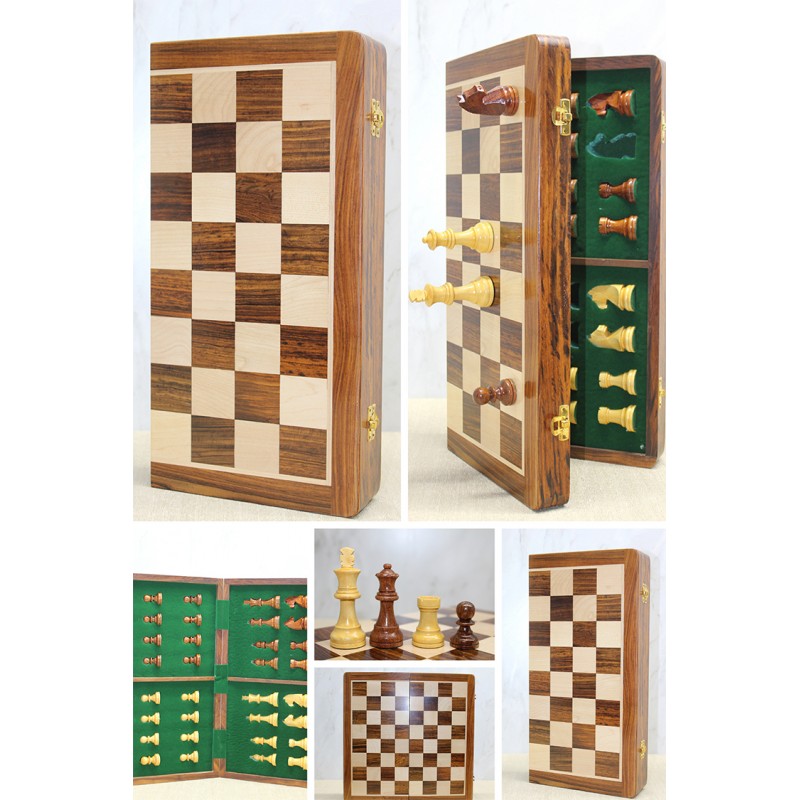 Mıknatıs taşlı ahşap katlanabilir kutulu satranç oyunu, zarif tasarımı ve büyük boyutuyla profesyonel oyun keyfi sunar.