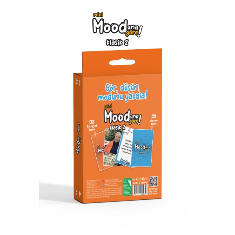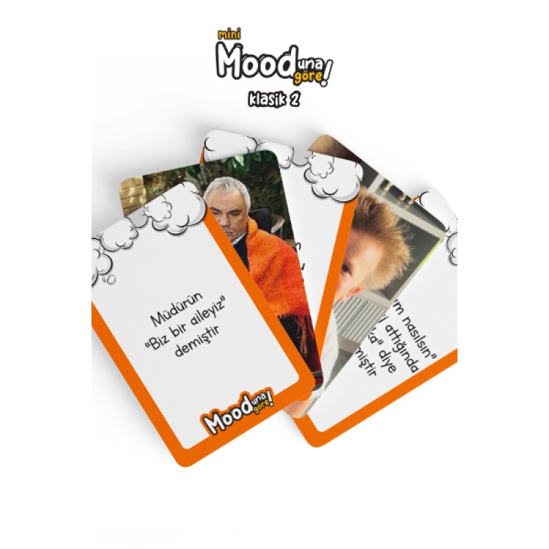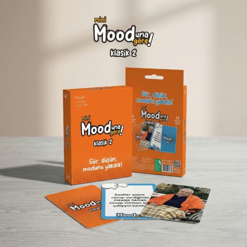 Mini Mooduna Göre Klasik 2, "Gör, düşün, modunu yakala!" mottosuyla eğlenceyi kaldığı yerden devam ettiren, yepyeni durum ve fotoğraf kartlarıyla dolu bir sosyal etkileşim oyunudur. Klasik serinin bu ikinci paketi, arkadaş ortamlarında mizah sınırlarını zorlamak ve en absürt eşleşmeleri yakalamak için tasarlandı. Masanın ortasına açılan durum kartlarına, elinizdeki en "mood" fotoğraf kartıyla cevap vererek rakiplerinizi güldürmeye çalışacağınız bu party game, yaratıcılığınızı ve espri yeteneğinizi yarıştırır. Enerjik turuncu tasarımı ve kaliteli kart baskısıyla öne çıkan set, kompakt yapısı sayesinde cebinizde veya çantanızda her yere taşınabilir. İlk serinin başarısını yeni nesil internet kültürüne uygun görsellerle pekiştiren Klasik 2, sosyal buluşmalarınızı, kamplarınızı ve ev partilerinizi unutulmaz bir kahkaha şölenine dönüştürecek.