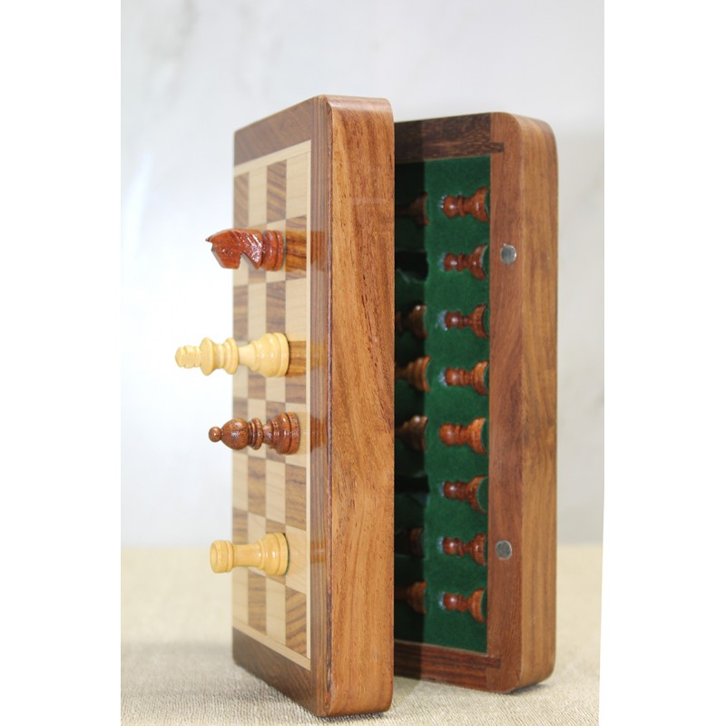 ÖZEL VERNİKLİ MIKNATIS TAŞLI AHŞAP KATLANABİLİR KUTULU SATRANÇ OYUNU 17.5 CM