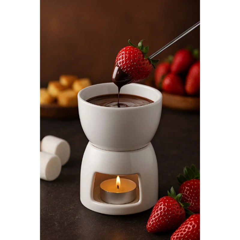 Evde romantik anlar, keyifli akşamlar ve tatlı sunumlar için mükemmel bir tercih olan Porselen Fondü Seti, şık ve minimalist tasarımıyla dikkat çeker. Isıya dayanıklı porselen malzemeden üretilmiş bu set, çikolata, peynir veya karamel gibi lezzetleri eritirken mükemmel ısı dengesini korur.
