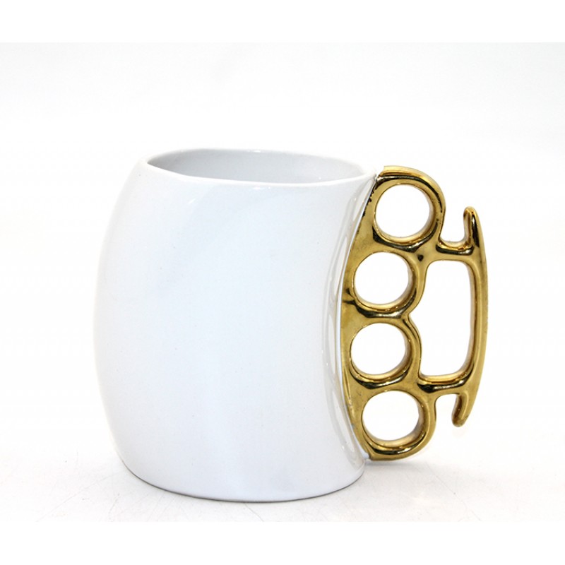 Kahve molalarınıza sert ve karizmatik bir dokunuş katın! Porselen Muşta Tasarımlı Kupa Bardak, alışılmışın dışındaki kulp tasarımıyla stilini kahve fincanına da yansıtmak isteyenler için üretildi. 11x13 cm boyutlarındaki geniş hacimli yapısı, parlak beyaz porselen gövdesi ve göz alıcı gold (altın sarısı) muşta formundaki kulpu ile mükemmel bir kontrast sunar. Yüksek kaliteli porselen malzemesi sayesinde içeceklerinizin sıcaklığını uzun süre korurken, ergonomik muşta kulpu sıra dışı bir tutuş deneyimi sağlar. Ofis masanızda tüm bakışları üzerine çekecek bu kupa, aynı zamanda ilginç ve maskülen hediye arayışında olanlar için benzersiz bir seçenektir. Hem fonksiyonel bir mutfak gereci hem de masanızın karakterini belirleyen dekoratif bir objedir.