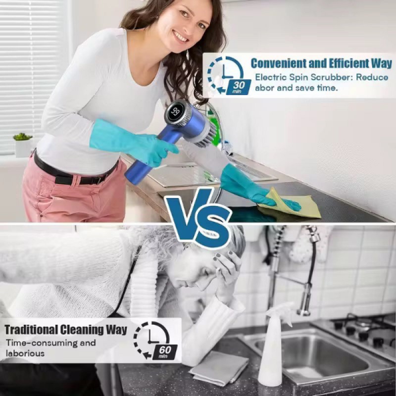 Profesyonel 5’i 1 Arada Şarjlı Temizlik Fırçası, ev temizliğini zahmetsiz ve pratik hale getirmek için tasarlanmış çok yönlü bir temizlik yardımcısıdır. Kablosuz kullanım özelliği sayesinde hareket özgürlüğü sunan şarjlı temizlik fırçası, uzun süreli kullanım imkanı ile günlük temizlik ihtiyaçlarını karşılamaya yardımcı olur. 3 kademeli ayarlanabilir güç seviyesi sayesinde farklı yüzeylerde kontrollü temizlik sağlayan ayarlanabilir temizlik aparatı, LED ekranı ile kademe göstergesini net şekilde takip etmenizi sağlar. Değiştirilebilir 5 farklı başlık seçeneği bulunan 5’i 1 arada temizlik fırçası, sünger, fırça ve tel başlık alternatifleri ile mutfak, banyo, lavabo, fayans ve zor lekeli yüzeylerde etkili temizlik sunar. Ergonomik tutma sapı ile rahat kavrama sağlayan ürün, detaylı temizlik gerektiren alanlarda pratik ve kontrollü kullanım avantajı sunar.