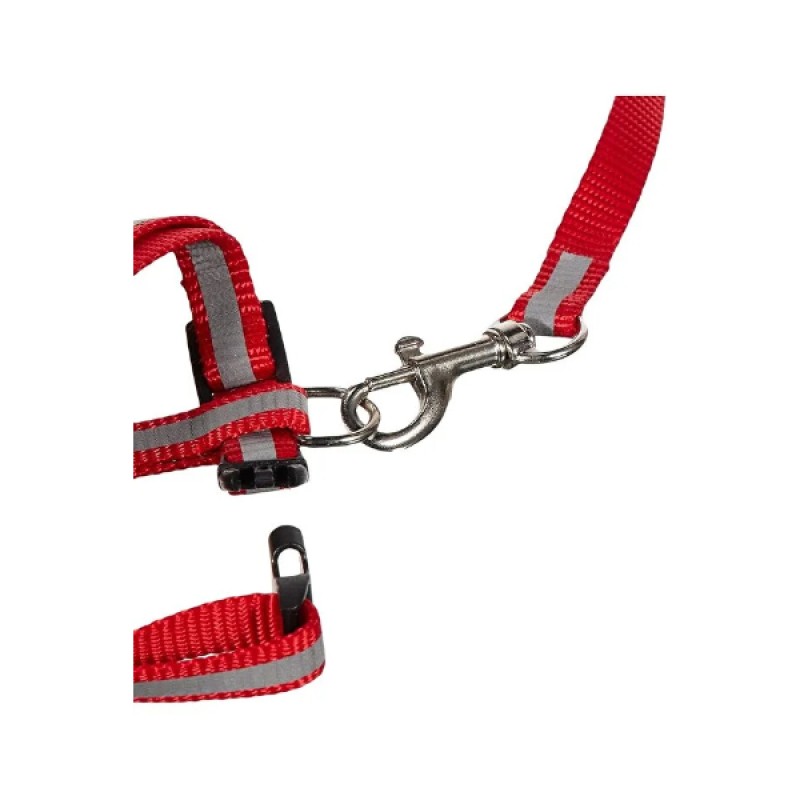 Üzerinde yer alan reflektörlü şeritler, özellikle akşam ve düşük ışıklı ortamlarda görünürlüğü artırarak kedinizin daha güvenli bir şekilde gezdirilmesini sağlar. Sağlam klipsli kilit sistemi kolay takılıp çıkarılabilir yapısıyla pratik kullanım sunarken, metal bağlantı halkası tasma kayışının güvenle sabitlenmesini sağlar. Set içerisinde yer alan gezdirme kayışı, kontrollü ve rahat yürüyüş imkânı sunarak hem ev içinde hem de dış mekânda kullanım için uygundur.