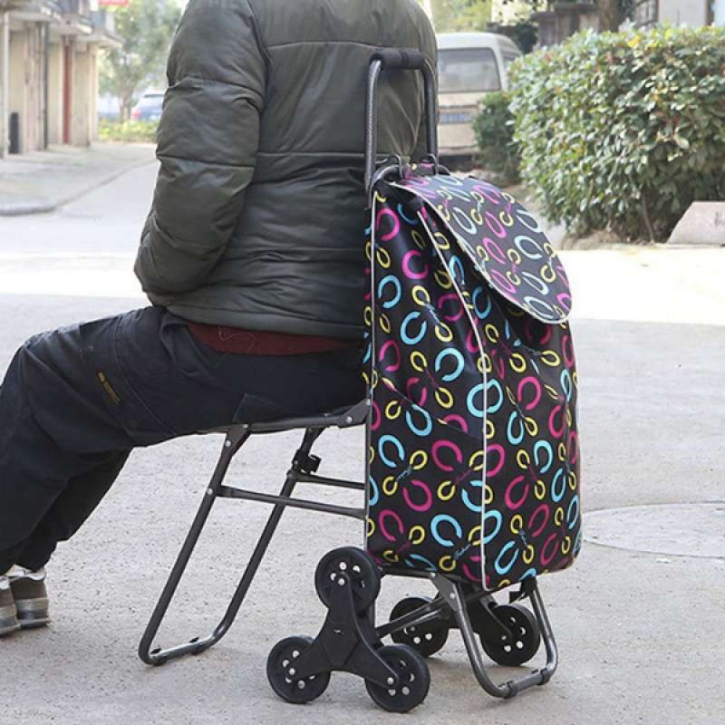 En önemli avantajlarından biri entegre katlanabilir sandalyesidir. Alışveriş esnasında yorulduğunuzda veya bekleme sırasında kolayca açılarak oturma alanı sunar. Bu özellik özellikle uzun süre ayakta kalmakta zorlanan kullanıcılar, yaşlılar ve dinlenme ihtiyacı duyanlar için büyük konfor sağlar. Ergonomik tutma sapı, itme ve çekme sırasında el yorgunluğunu azaltacak şekilde tasarlanmıştır.