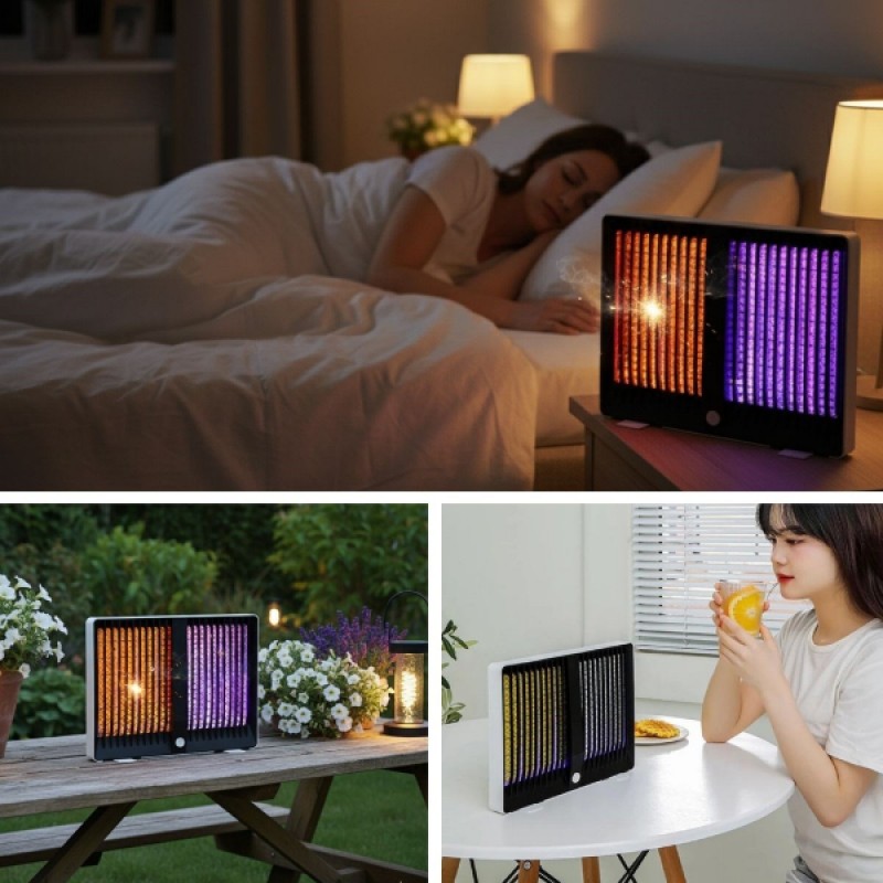 Şarjlı sivrisinek öldürücü lamba, güçlü UV ışık teknolojisi sayesinde sivrisinekleri ve uçan haşereleri etkili biçimde kendine çekerek kimyasal kullanmadan yok edilmesini sağlar. Sessiz çalışma sistemi gece boyunca rahatsız etmeden çalışmasına imkân tanır ve yatak odası gibi alanlarda konforlu kullanım sunar.