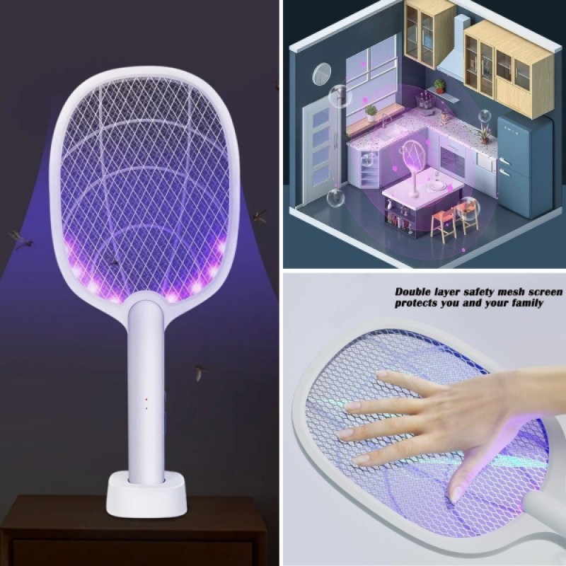 Şarjlı standlı sinek öldürücü raket, 5W güçlü performansı ve UV mor ışık teknolojisi sayesinde sinek ve uçan böcekleri hızlı ve etkili şekilde yakalamak için tasarlanmıştır. UV mor ışık, sivrisinekleri ve haşereleri kendine çekerken yüksek voltajlı tel örgü temasıyla anında etkisiz hale getirir. Şarj edilebilir bataryası sayesinde kabloya ihtiyaç duymadan ev içinde ve dış mekânlarda rahatça kullanılabilir.