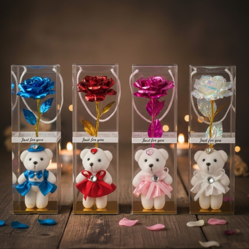 | Ürün Adı | Şeffaf Kutulu Ayıcıklı Sonsuzluk Gülü |