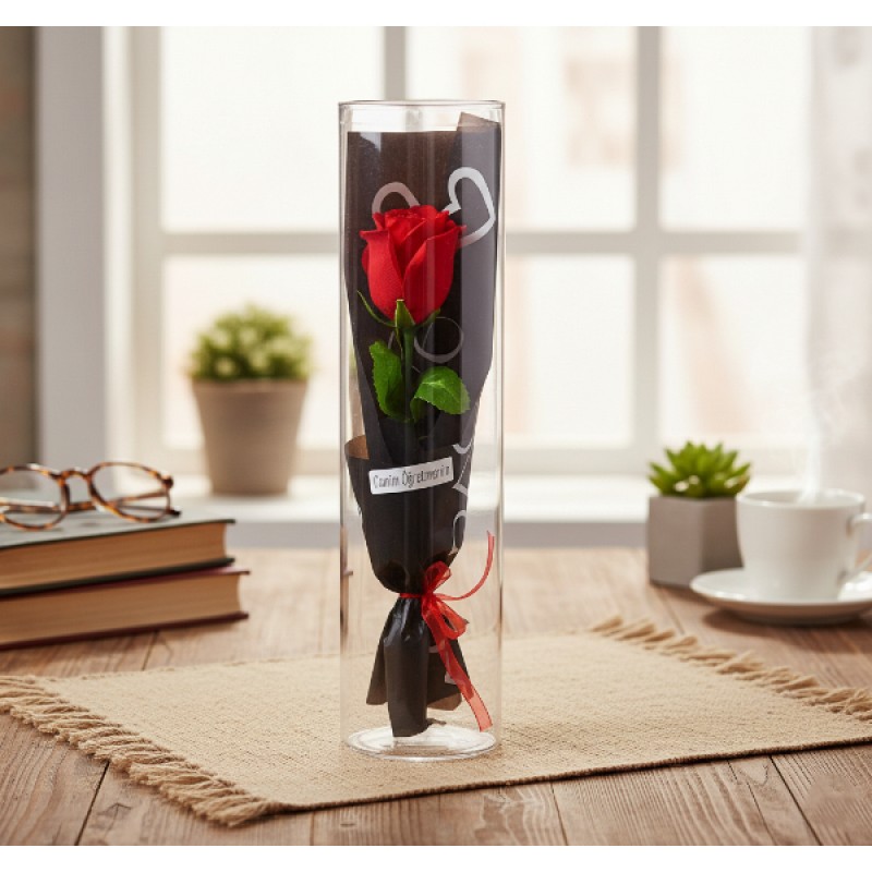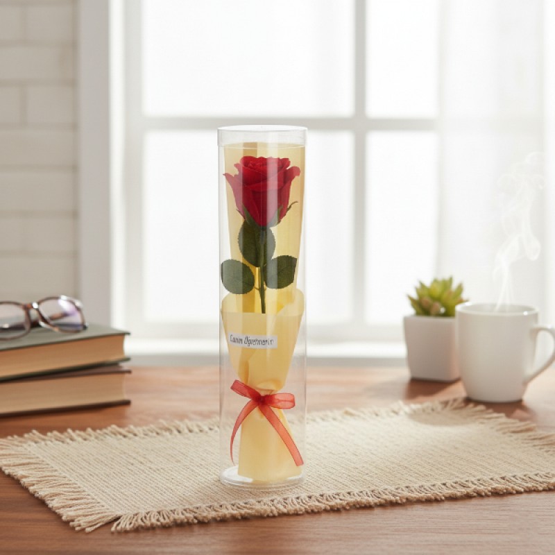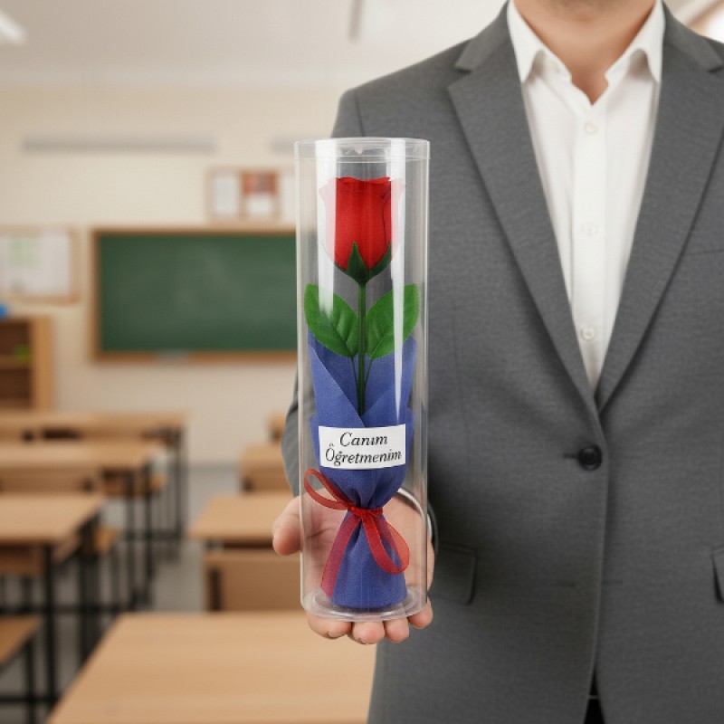 1 adet Şeffaf Silindir Kutulu Gül - Öğretmenler Günü Hediyesi