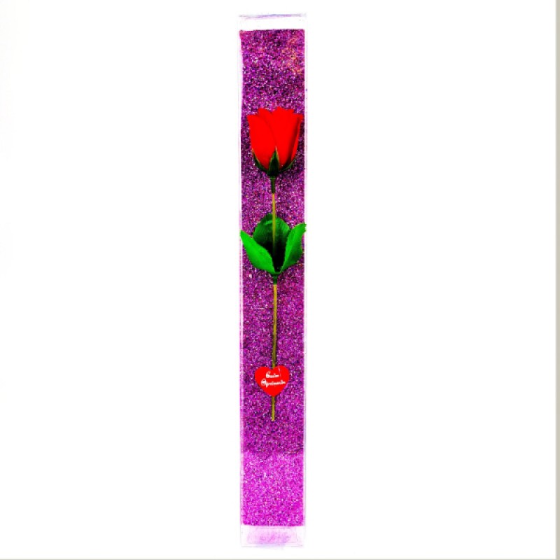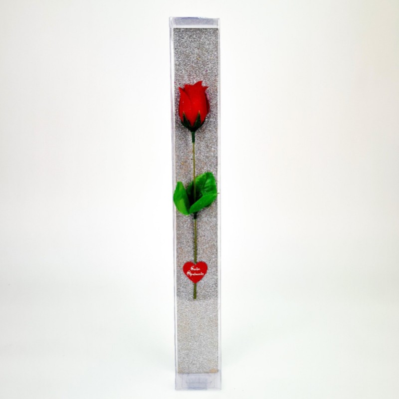 1 adet Şeffaf Simli Kutulu Gül - Öğretmenler Günü Hediyesi
