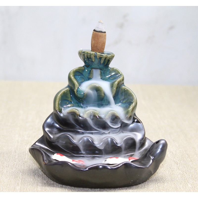 11x10 cm boyutundaki kompakt yapısı sayesinde çalışma masasında, meditasyon köşelerinde, oturma odasında veya hediye amaçlı kullanımda ideal bir tamamlayıcıdır. Yüksek ısıya dayanıklı seramik malzemeden üretilmiş olması güvenli kullanım sağlarken, el işçiliği detayları ürüne sanatsal bir görünüm kazandırır. Geri akış konik tütsülerle uyumlu olan tasarımı sayesinde dumanın iç kanallardan süzülerek sakinleştirici bir şelale etkisi oluşturması ortama huzurlu bir ambiyans katar. Hem dekoratif hem de fonksiyonel bir aromaterapi deneyimi sunar.