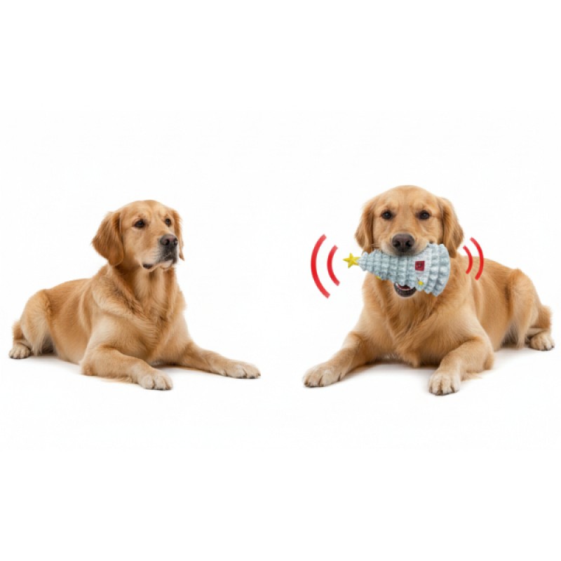 Sesli Çam Ağacı Tasarımlı Oyuncak, şık yılbaşı konsepti ve eğlenceli ses efektleriyle köpeğinizin oyun keyfini ikiye katlar. Dayanıklı dokusu sayesinde diş ve çene hareketlerine karşı üstün direnç gösterir ve uzun süre yıpranmadan kullanılabilir. Yumuşak ama sağlam malzemesi, hem çiğneme hem yakalama oyunlarında güvenli bir deneyim sunar.
