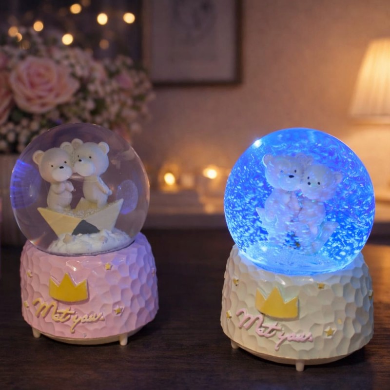 Masalsı bir dünyanın kapılarını aralayın! Sevimli Ayıcık Tasarımlı Kar Küresi, 18 cm boyundaki büyük gövdesi ve gelişmiş motorlu mekanizmasıyla yaşam alanlarınıza huzur ve neşe katıyor. Yüksek kaliteli kalın cam fanus içerisinde, ayın üzerinde oturan birbirine sarılmış sevimli ayıcık figürleri yer almaktadır. Ürünün alt gövdesi dayanıklı sert polyester malzemeden imal edilmiş olup, örgü doku desenleri ve altın rengi taç amblemiyle zenginleştirilmiştir. Alt kısmındaki açma-kapama düğmesiyle aktive olan bu kar küresi, sadece dinlendirici bir müzik çalmakla kalmaz, aynı zamanda renk değiştiren LED ışıklarıyla görsel bir şölen sunar. En önemli özelliği ise içindeki motorlu sistemdir; müziği açtığınızda kar taneleri otomatik olarak figürlerin etrafında uçuşmaya başlar. Sevdikleriniz için görkemli ve unutulmaz bir hediye arıyorsanız, bu büyük boy küre en şık tercihlerden biri olacaktır.