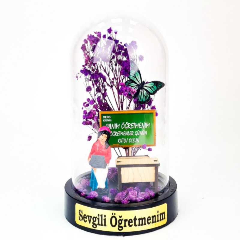 Fanusun ters yapısı, içerisinde yer alan detayları ön plana çıkarır ve şeffaf koruma alanı sayesinde uzun ömürlü bir saklama imkânı sunar. Kutu ambalajıyla birlikte hediye edilmeye hazır şekilde gönderilir. Öğretmenler Günü, doğum günleri veya özel günler için duygusal ve dekoratif bir hediye tercihidir.