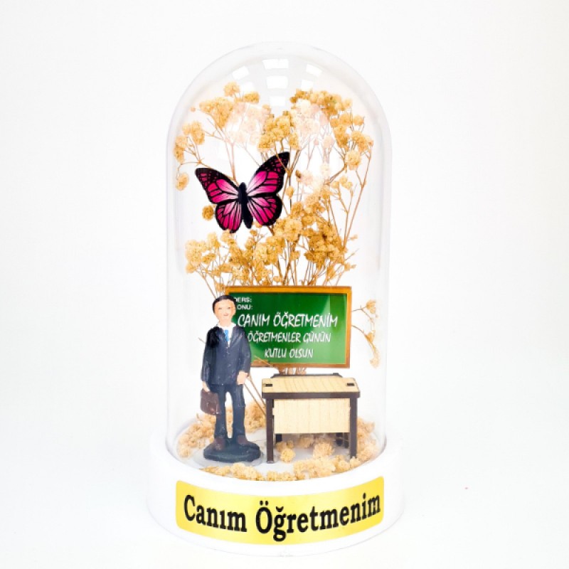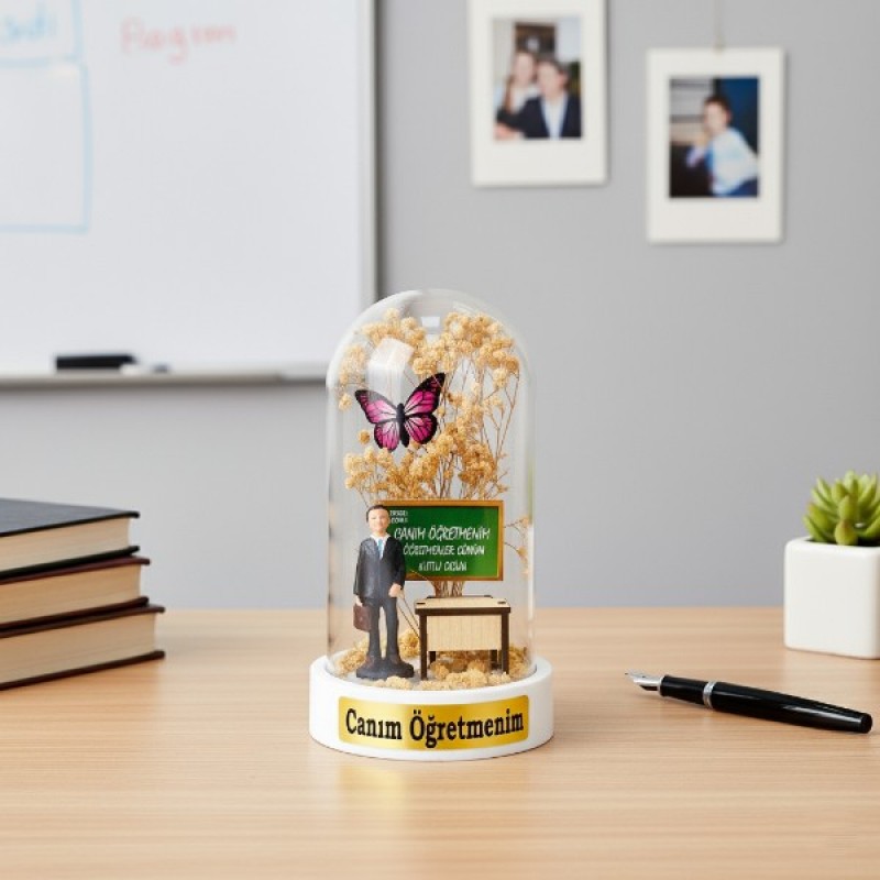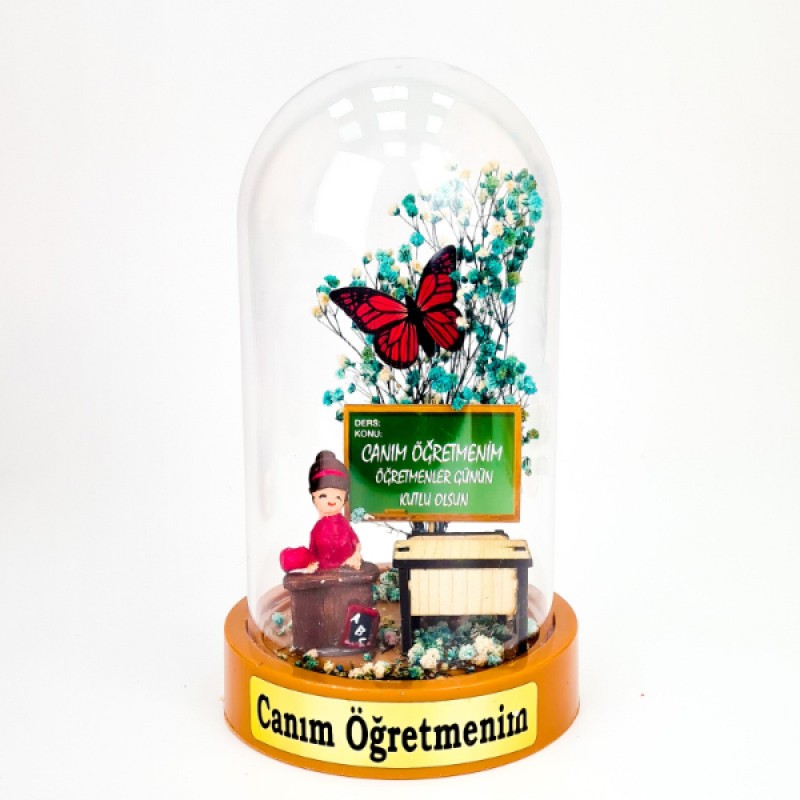 1 adet Sıralı Biblolu Ters Fanus - Öğretmenler Günü Hediyesi
