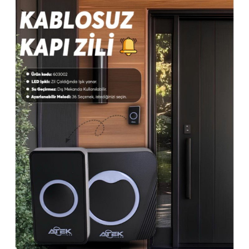 Su geçirmez yapısı sayesinde dış kapılarda güvenle kullanılabilirken, LED ışıklı uyarı özelliği ile zil çaldığında görsel bildirim sunarak sesin duyulmadığı durumlarda bile fark edilir hale gelir. 36 farklı ayarlanabilir melodi seçeneği kullanıcıya özgür bir seçim imkânı sunar ve her ortama uyum sağlayacak bir kullanım deneyimi oluşturur.