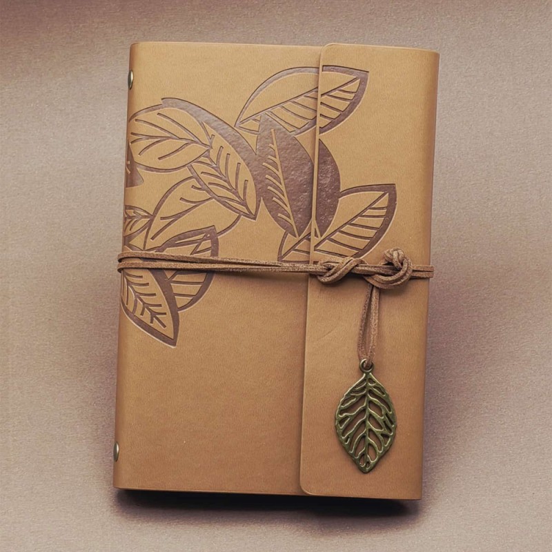 1 Adet Siyah Yapraklı Desenli Deri Defter