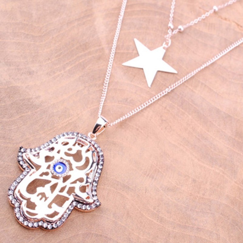 2 Sıralı Havva Ana Eli Yıldızlı Uzun Kolye