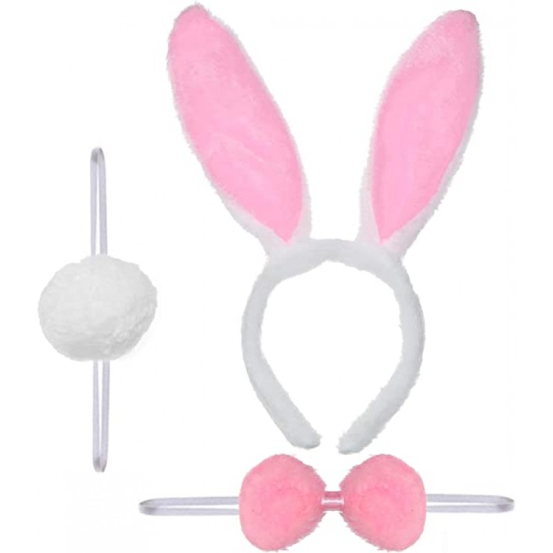1 adet Tavşan Kostüm Seti Taç Papyon Kuyruk Pembe Renk