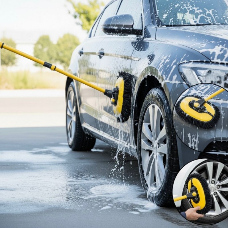 Teleskopik saplı kuru ıslak oto yıkama fırçası, araç temizliğini pratik ve zahmetsiz hale getirmek için tasarlanmıştır.