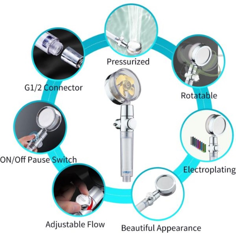 1 adet turbo pervaneli ve ayarlanabilir duş başlığı
