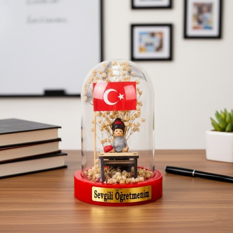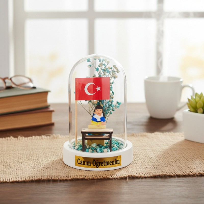1 adet Türk Bayraklı Sıralı Ters Fanus - Öğretmenler Günü Hediyesi