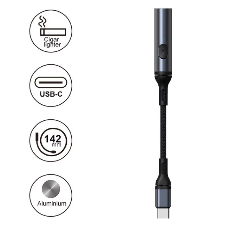Alüminyum gövdesi hem şık hem dayanıklı bir yapı sağlar. Tek tuşla çalışan güvenlik sistemi, kazara çalışmayı önlerken sürekli ateşleme için güvenilir bir kullanım deneyimi sunar. USB-C girişli her cihazla uyumlu olması, powerbank, bilgisayar, araç içi USB girişleri ve adaptörlerle anında kullanılabilmesini sağlar.