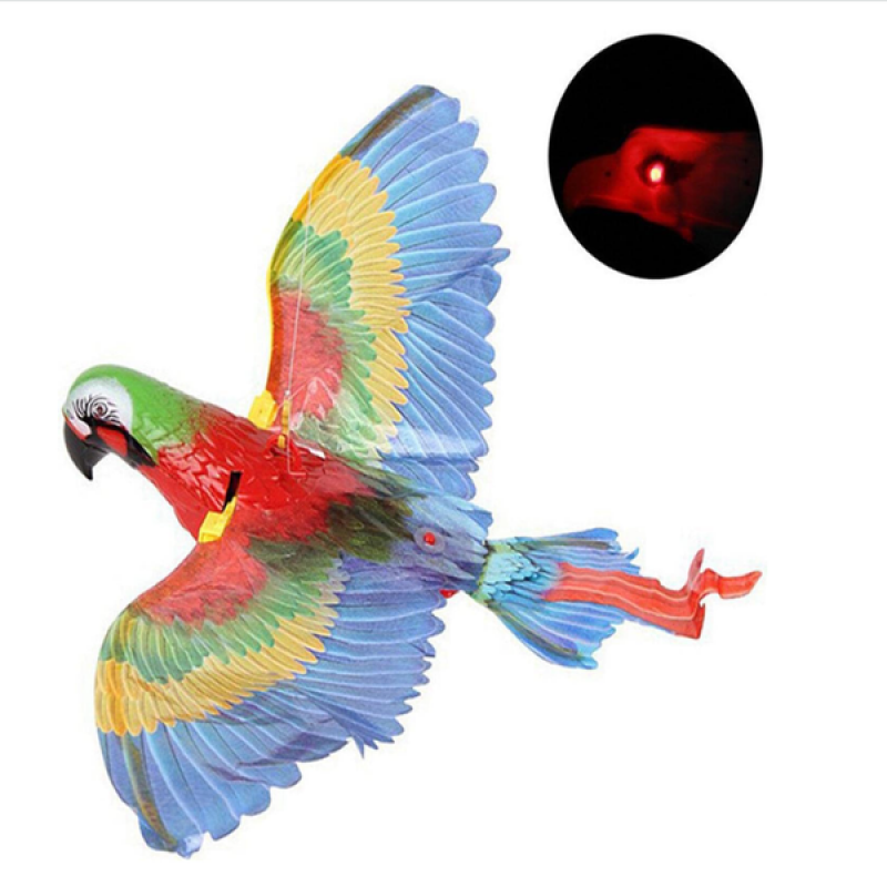 Bird Flying Cat Toy kediler için eğlenceli bir oyun deneyimi sunar. Dayanıklı PP ve kanvas malzemeden üretilmiştir. Açma düğmesi aktif hale getirildiğinde gözlerinden kırmızı ışık yayar ve ağzından ses çıkararak kedilerin ilgisini çeker. Hafif yapısı ve müzikli tasarımı sayesinde evcil dostlarınız için uzun süreli keyifli bir oyun arkadaşıdır. Kanat ölçüleri modele göre farklılık göstermektedir; kartal modeli 43x25 cm, papağan modeli ise 42,5x30 cm ölçülerindedir. Ürün, 2 adet AA pil ile çalışır (piller pakete dahil değildir). Ayrıca ürün ile birlikte askı teli de bulunmaktadır.