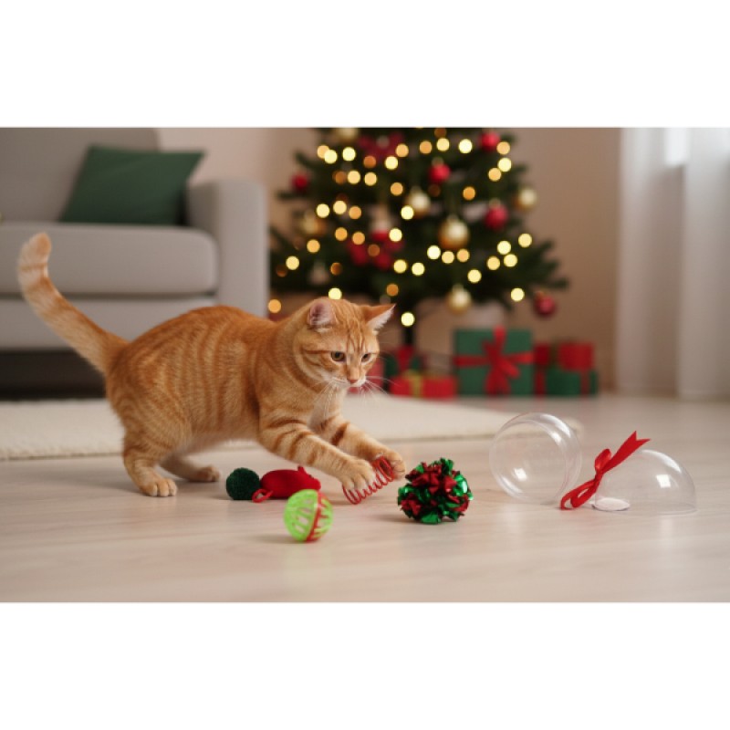Yılbaşı Konseptli 8 Parça Küre İçinde Oyuncak Seti, kedinizin oyun içgüdüsünü canlandıran renkli ve eğlenceli parçalarıyla hem görsel hem de işlevsel bir oyun deneyimi sunar.