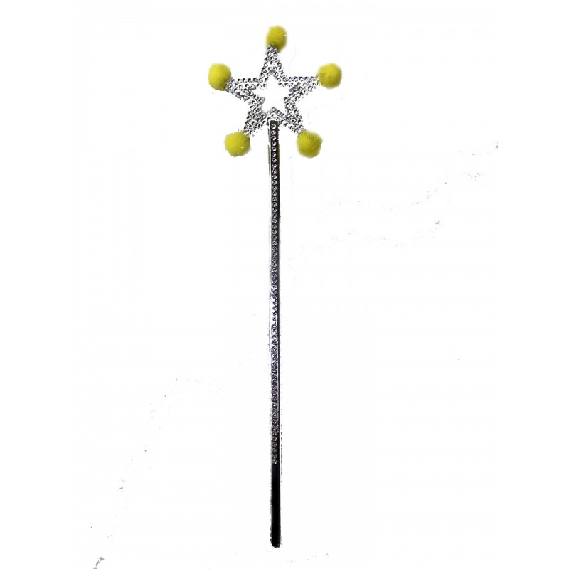 Kostüm Aksesuarlarının vazgeçilmezlerinden Yıldız Peri Asası Model : Sarı Ponponlu Pakette 1 Adet Uzunluk : 35 cm Malzeme : Plastik